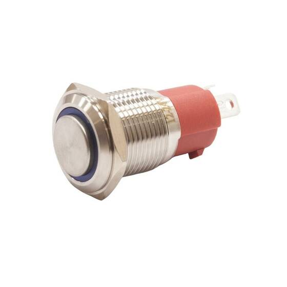 16D-G1-E 16mm Çıkık Yaylı Işıklı Metal Buton - Mavi