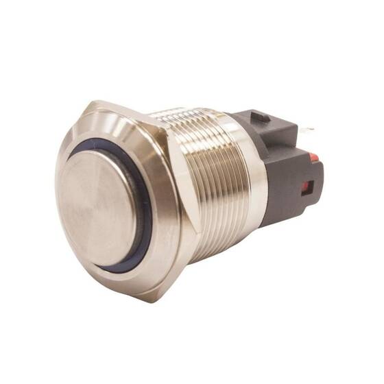 22E-G1-E 22mm Çıkık Yaylı Işıklı Metal Buton - Mavi